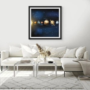 Plakat i sort ramme - Solsystemet med planeter mod en baggrund af stjerner - 50x70cm - En ud af ti - Moderne vægdekoration til stue og soveværelse ARTTOR