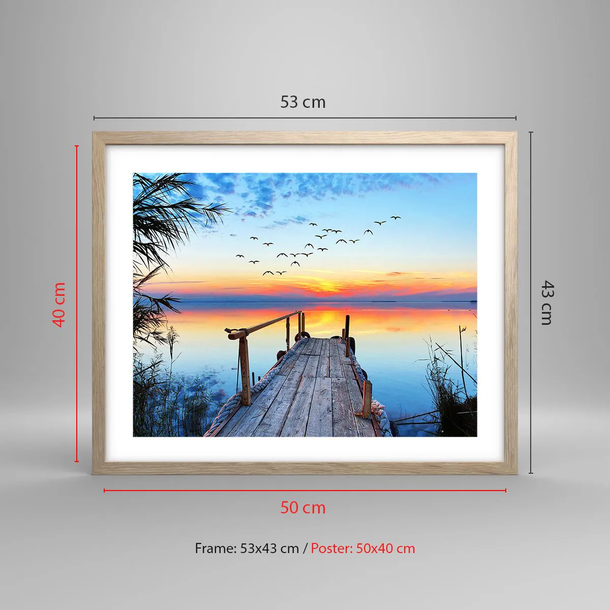 Plakat i ramme af lyst egetræ - Tid til at tage tilbage... - 50x40 cm