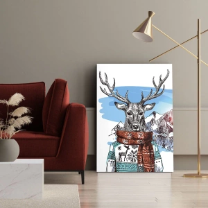 Lærredsmaleriet "Selv en hjort fryser ikke" er en unik dekoration, der tiltrækker opmærksomhed med sin originalitet og udtryksfuldhed. Det forestiller en hjort i en vintertrøje med norske mønstre og et varmt tørklæde mod baggrunden af et majestætisk bjerglandskab.
