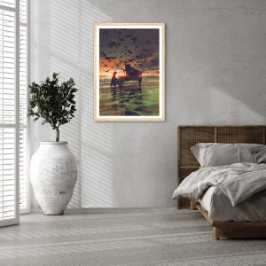 Plakat i ramme af lyst egetræ - Koncert for klaver og bølger - 70x100 cm