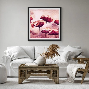 Plakat i sort ramme - Rød og hvid flage - 30x30 cm