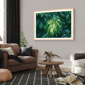 Plakat i ramme af lyst egetræ - Fordyb dig i friskhed - 100x70 cm