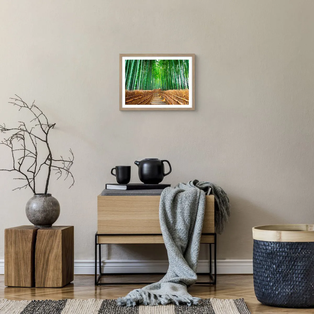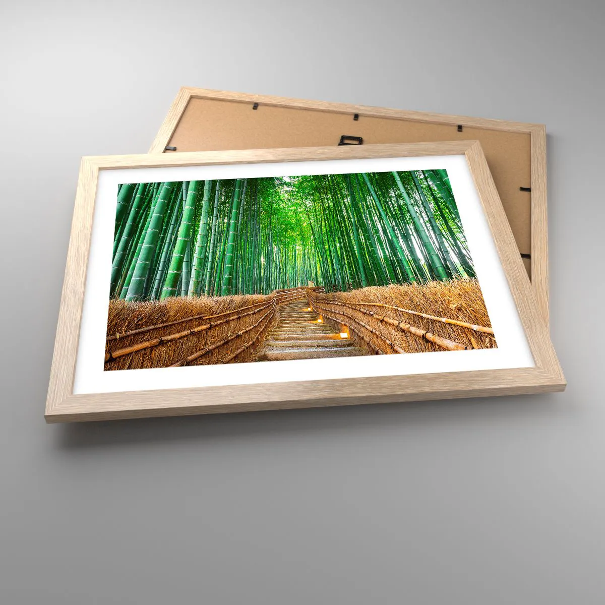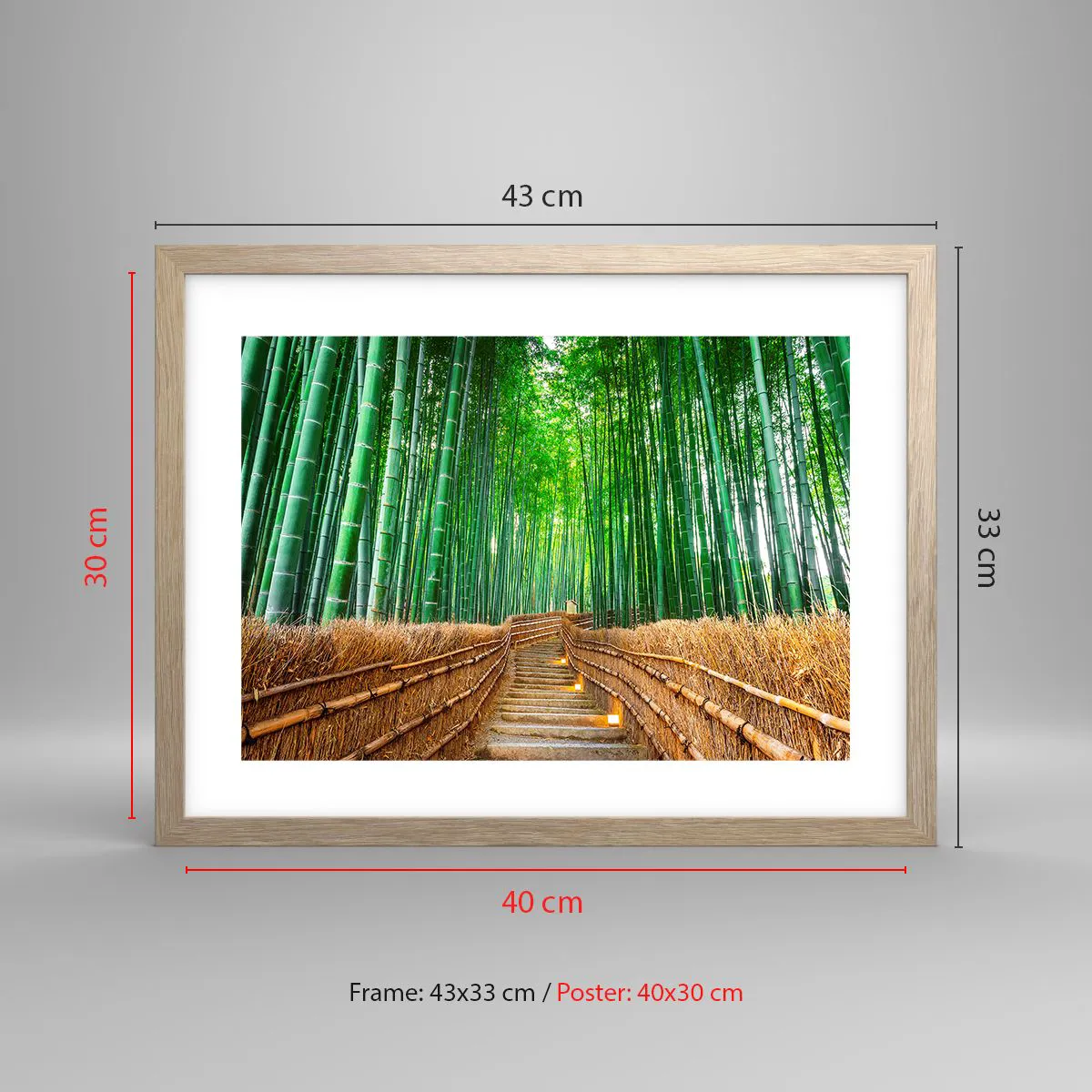 Plakat i ramme af lyst egetræ - Essensen af den asiatiske natur - 40x30 cm