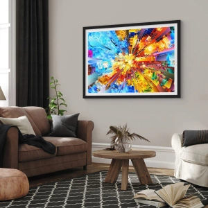 Plakat i sort ramme - En farverig eksplosion af lys i en abstrakt form - 50x70cm - In medias res - Moderne vægdekoration til stue og soveværelse ARTTOR