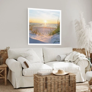 Plakat - Havet brummer, fuglene synger, en vild strand midt i græsset.... - 40x30 cm