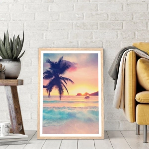 Plakat i ramme af lyst egetræ - En aften i bugten - 40x40 cm