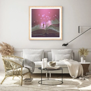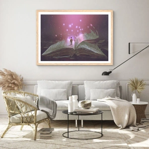 Plakat i ramme af lyst egetræ - En invitation til en anden verden - læs den! - 30x40 cm