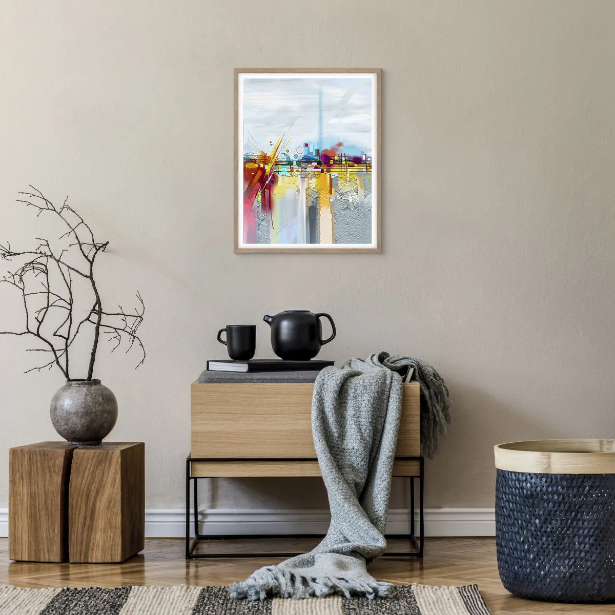 Plakat i ramme af lyst egetræ - Glædens bro over livets flod - 40x50 cm