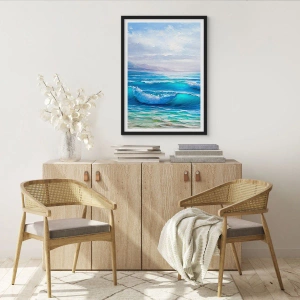 Plakaten "Havbølger mod en blå himmel" er en unik dekoration, der introducerer en atmosfære af afslapning og naturens harmoni i interiøret. Billedet viser bølger, der slår mod den rolige vandoverflade, suppleret af en blå himmel og diskrete skyer i baggrunden. Denne komposition afspejler perfekt naturens skønhed i sin reneste form.