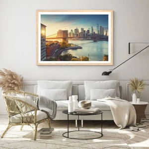 Plakat i ramme af lyst egetræ - Den store bys daggry - 50x70 cm