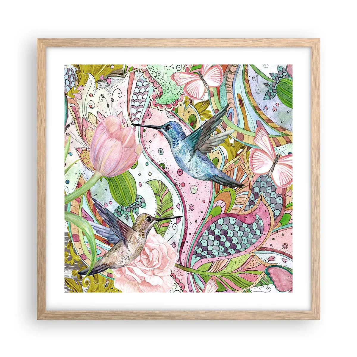 Plakat i ramme af lyst egetræ - Forviklet i vinstokkene - 50x50 cm