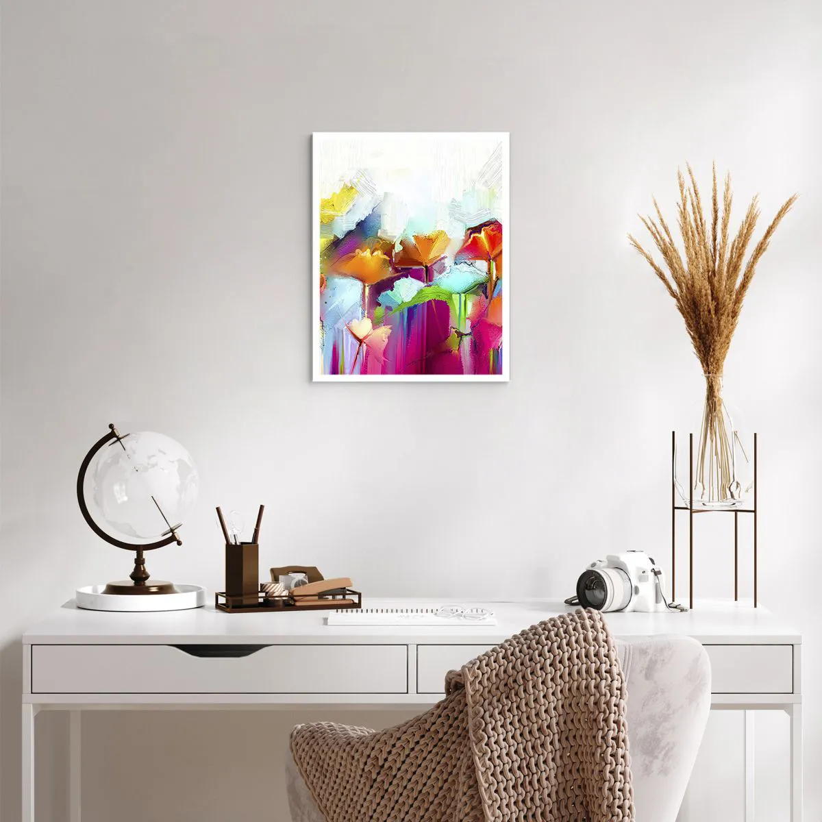 • Abstrakt, Blomster, Kunst, Botanik, Blomster, Kunst, Til kontoret, Til studiet, Til spisestuen, Til hallen, Til stuen, Til soveværelset, Hvid, Orange, Pink, Farverig, Lodret