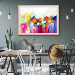 Plakat i ramme af lyst egetræ - Regnbuen i blomstring - 50x50 cm