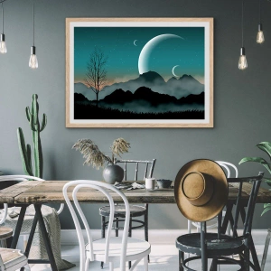 Plakat i ramme af lyst egetræ - Karneval i den stjerneklare nat - 30x30 cm