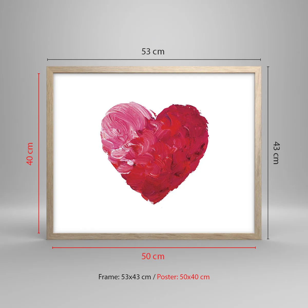 Plakat i ramme af lyst egetræ - All you need is love - 50x40 cm