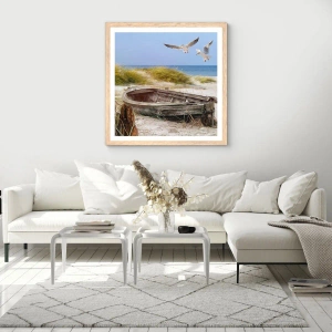 Plakat i ramme af lyst egetræ - Badet i vinden - 40x50 cm