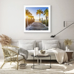 Plakat i hvid ramme - Direkte til paradis - 40x40 cm