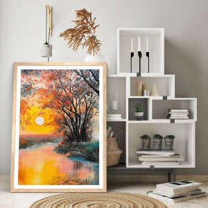 Plakat i ramme af lyst egetræ - Efterårs atmosfære - 70x100 cm