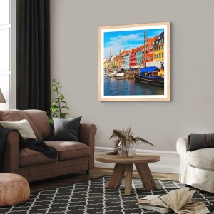 Plakat i ramme af lyst egetræ - Glædelig kaj - 30x30 cm