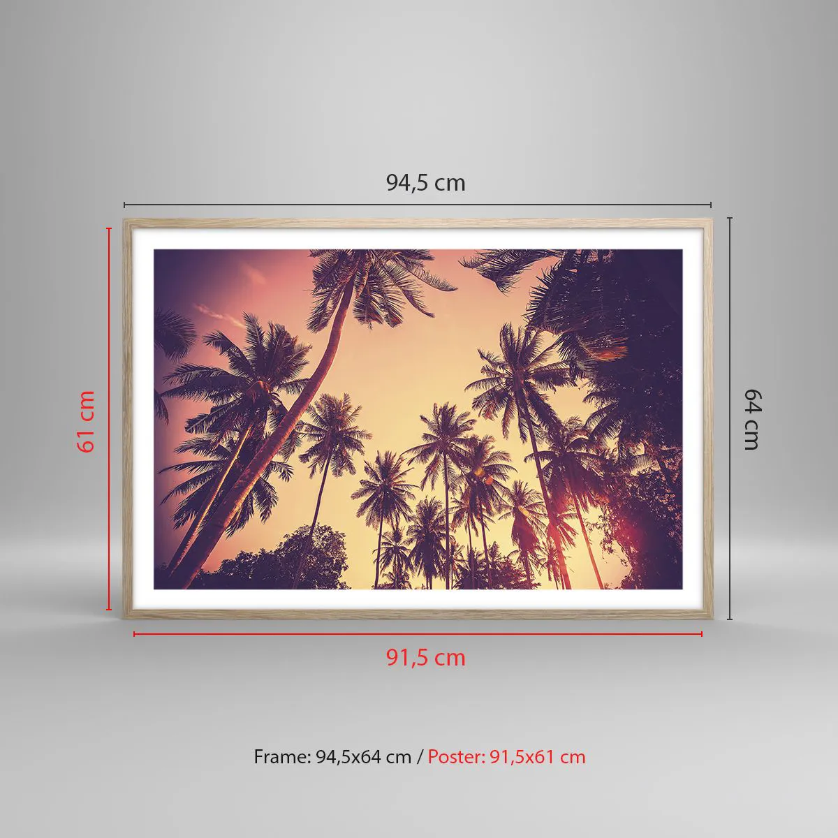 Plakat i ramme af lyst egetræ - Tropisk variation - 91x61 cm