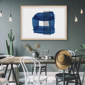 Plakat i ramme af lyst egetræ - Blå-sort sammensætning - 40x30 cm