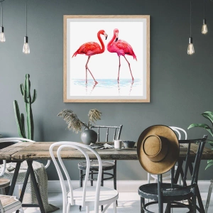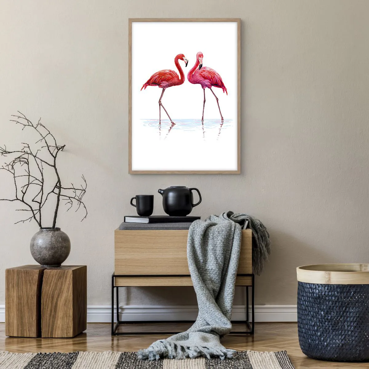 Plakat i ramme af lyst egetræ - Lyserødt randez-vous - 50x70 cm