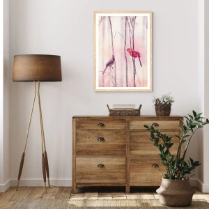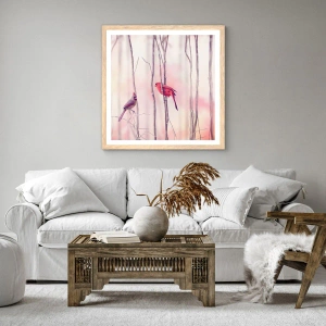 Plakat i ramme af lyst egetræ - Fortællingen om den lyserøde skov - 30x30 cm