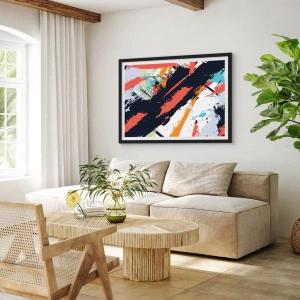 Plakat i sort ramme - Abstrakt komposition med dynamiske penselstrøg. - 50x70cm - Dynamisk sammensætning - Moderne vægdekoration til stue og soveværelse ARTTOR
