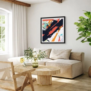 Det abstrakte motiv, fuld af energi og moderne æstetik, er et fremragende valg for dem, der værdsætter kunst og dristige accenter i indretningen. Denne plakat bringer friskhed og dynamik til ethvert rum.