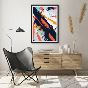 • Denne plakat forestiller en abstrakt komposition med dynamiske penselstrøg. Den er perfekt til moderne interiører og leveres med en sort ramme.