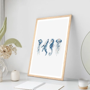 Plakat i ramme af lyst egetræ - Havets vidundere - 100x70 cm