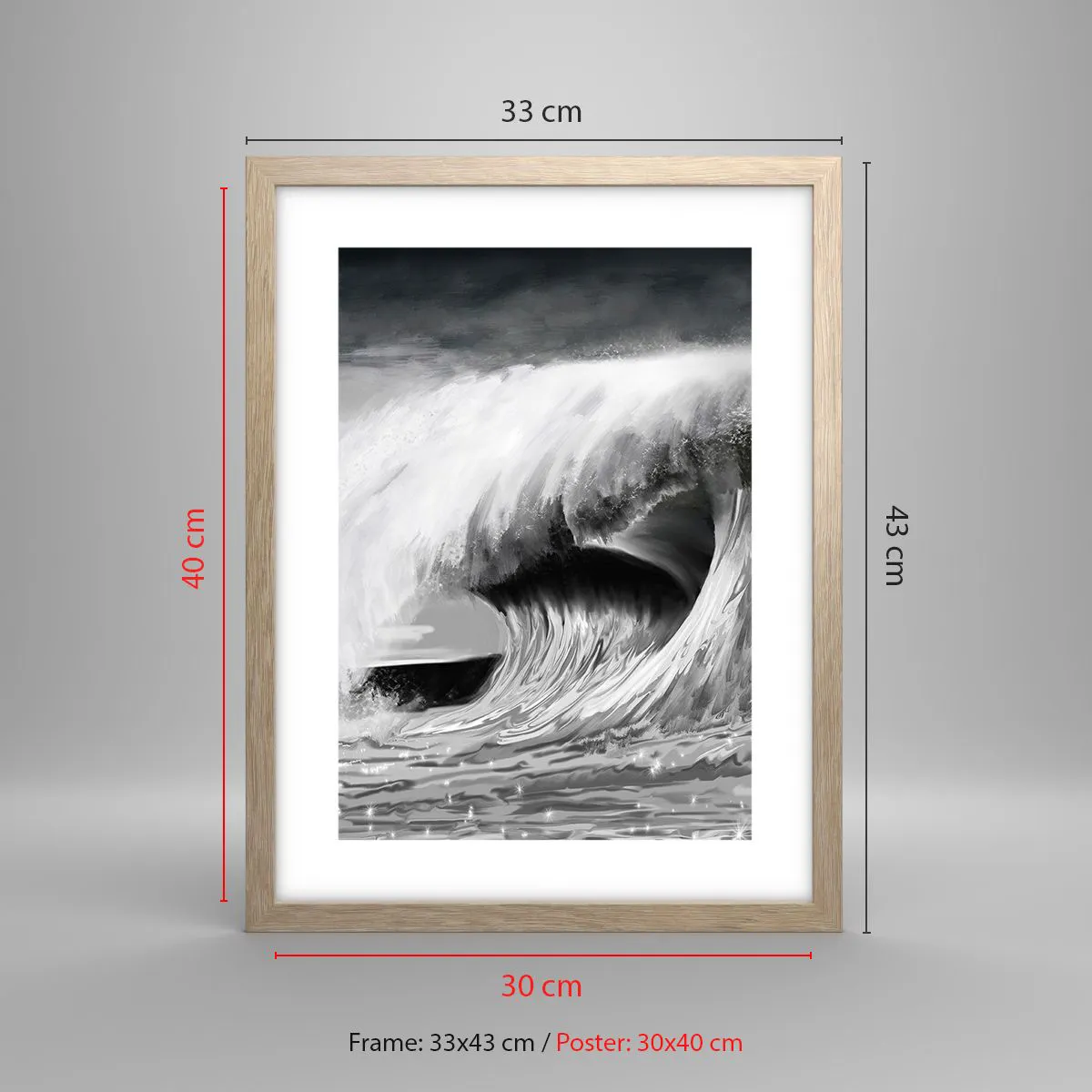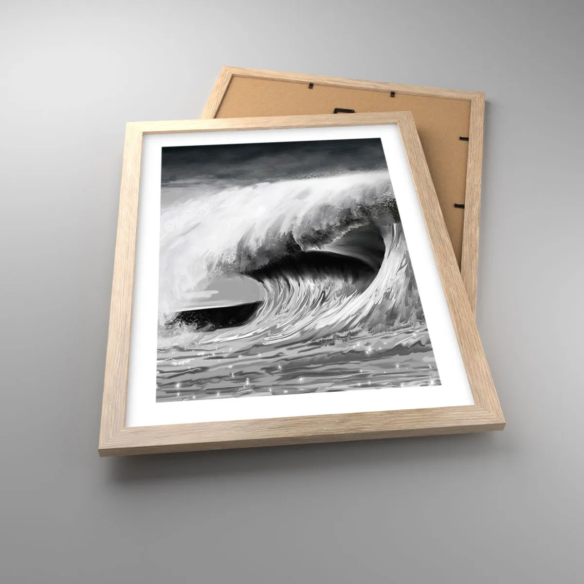 Plakat i ramme af lyst egetræ - Havets vrede - 30x40 cm