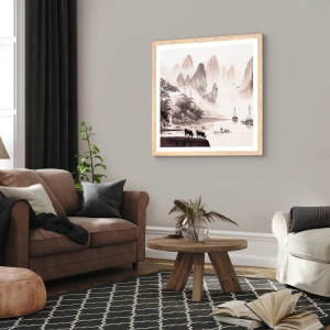 Plakat i ramme af lyst egetræ - Østens eksotiske hverdag - 61x91 cm