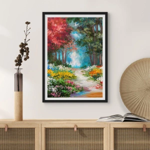 Plakat i sort ramme - Skovhave, blomsterskov - 100x70 cm