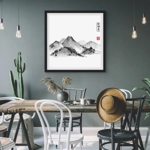 - Denne plakat forestiller et minimalistisk japansk bjerglandskab. Den sort-hvide komposition betager med sin subtilitet og harmoni, perfekt til moderne eller klassiske interiører.