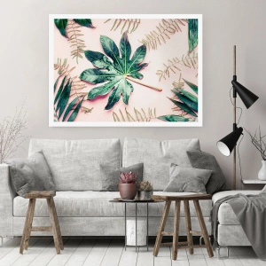 • Tropisk plante, palmeblade, bregneblad, Botanik, Natur, Til kontoret, Til arbejdsværelset, Til spisestuen, Til badeværelset, Til hallen, Til stuen, Til soveværelset, Pink, Grøn, Vandret