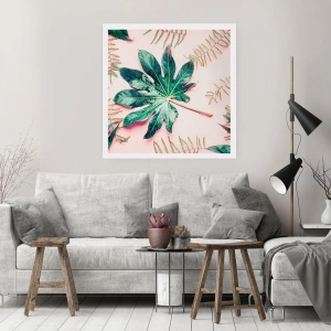 Plakat - En undersøgelse af grønt på en lyserød baggrund - 100x70 cm