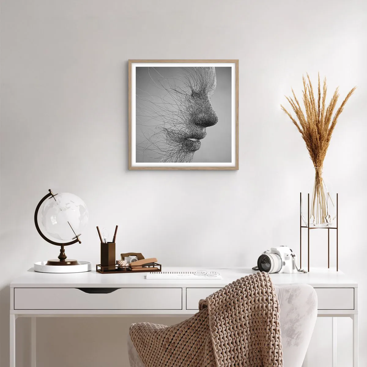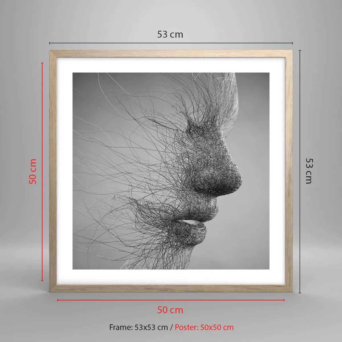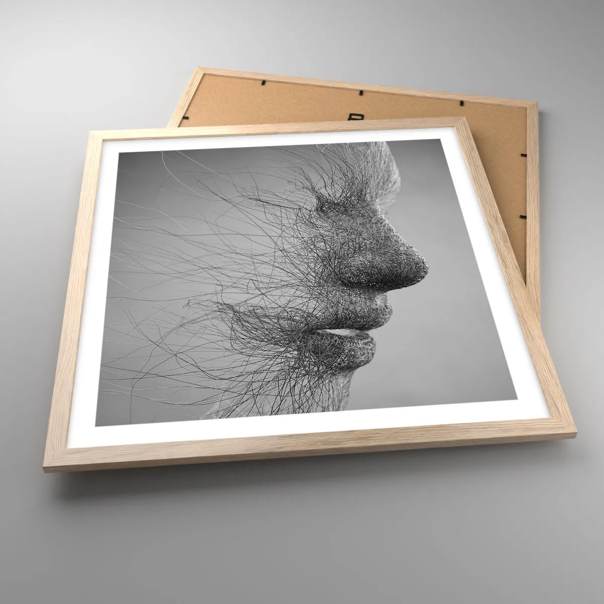 Plakat i ramme af lyst egetræ - Vindens ånd - 50x50 cm