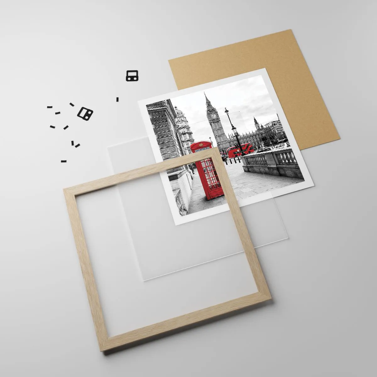 Plakat i ramme af lyst egetræ - Uden tvivl, London - 60x60 cm