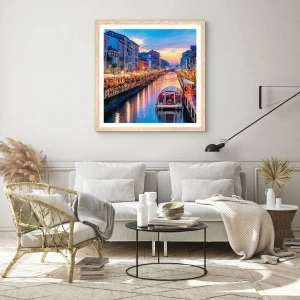 Plakat i ramme af lyst egetræ - En aften med lys og sjov - 70x50 cm