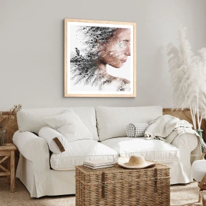 Plakat i ramme af lyst egetræ - Skovens ånd - 50x70 cm