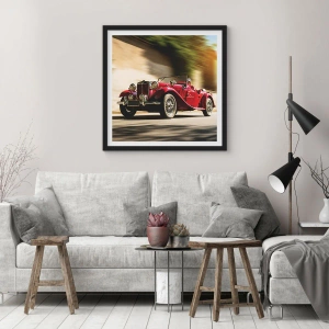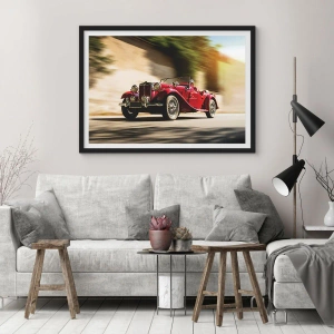 Plakat i sort ramme - Rød klassisk bil mod et sløret landskab - 50x70cm - Smukkere end Nike fra Samothrake - Moderne vægdekoration til stue og soveværelse ARTTOR