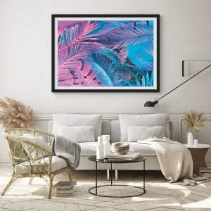 Plakat i sort ramme - Troperne i lyserød og blå - 30x40 cm