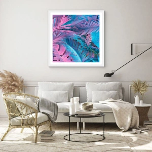Plakat i hvid ramme - Troperne i lyserød og blå - 40x50 cm