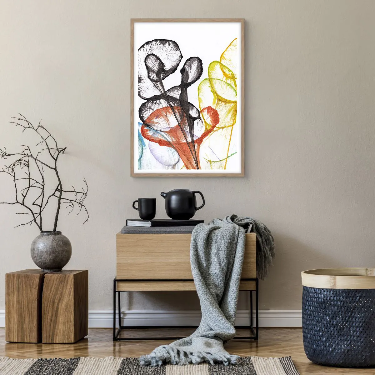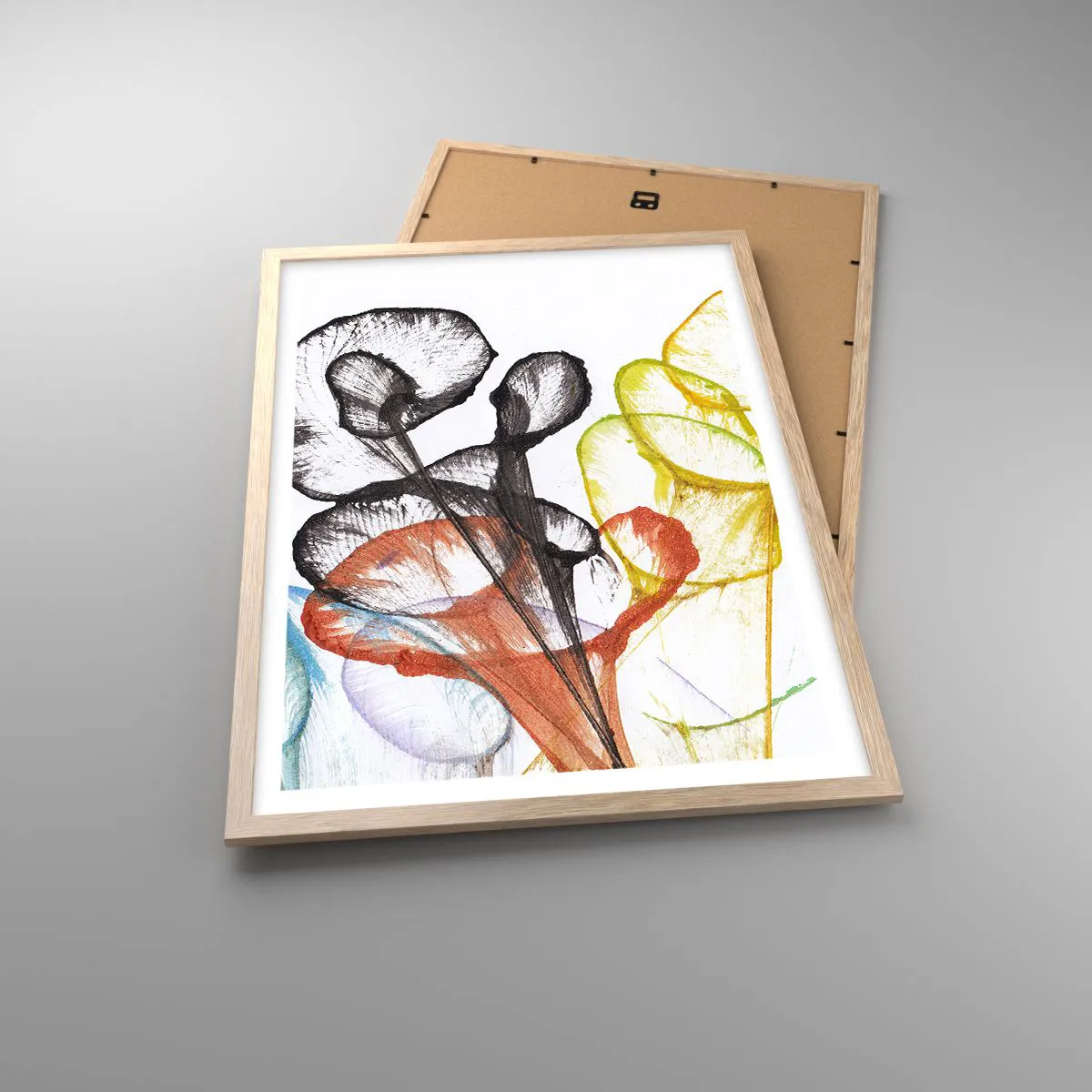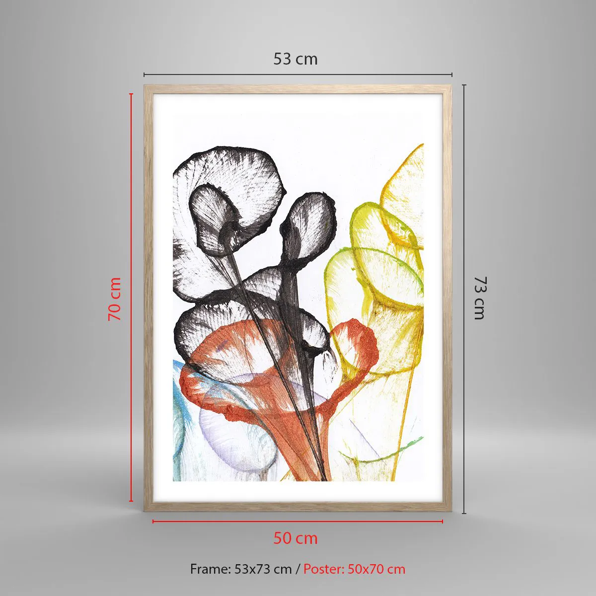 Plakat i ramme af lyst egetræ - Blomster med sjæl - 50x70 cm
