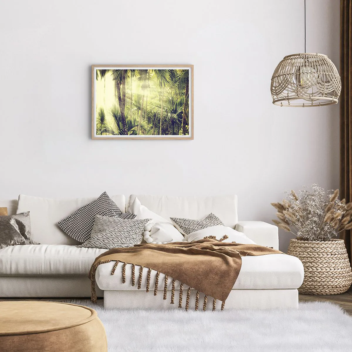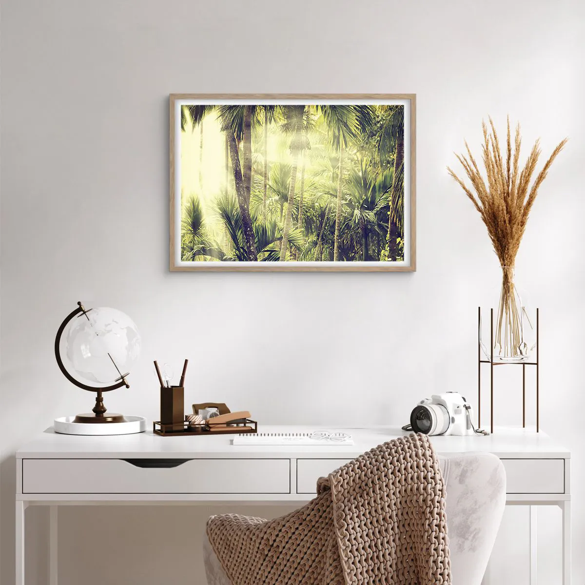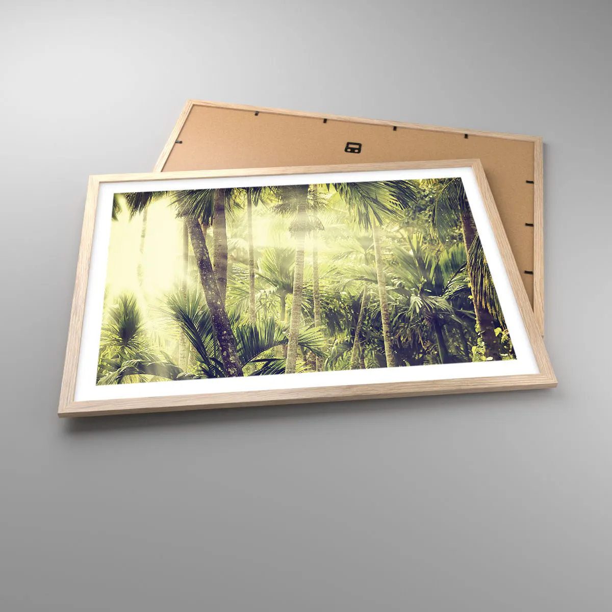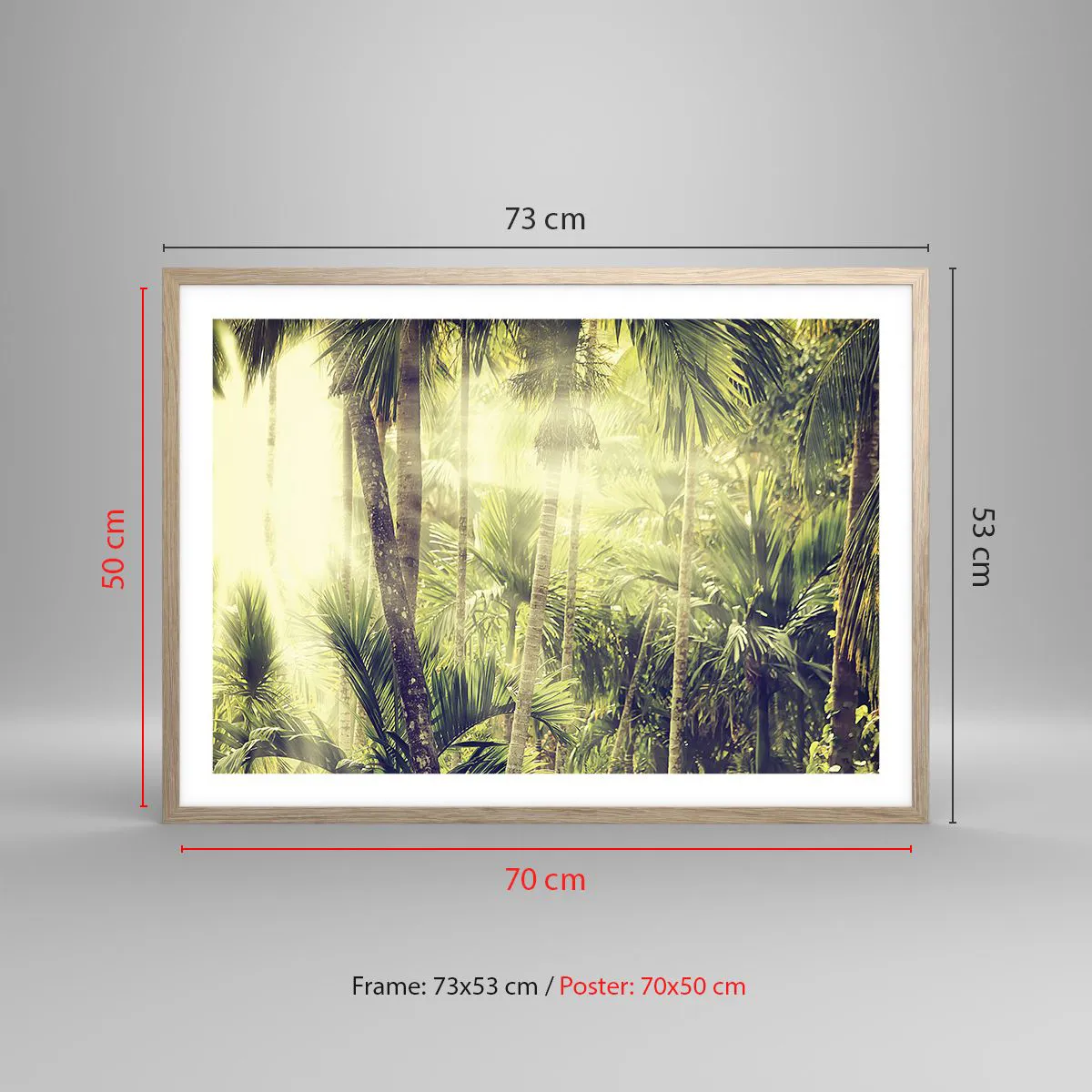 Plakat i ramme af lyst egetræ - I grønne gløder - 70x50 cm