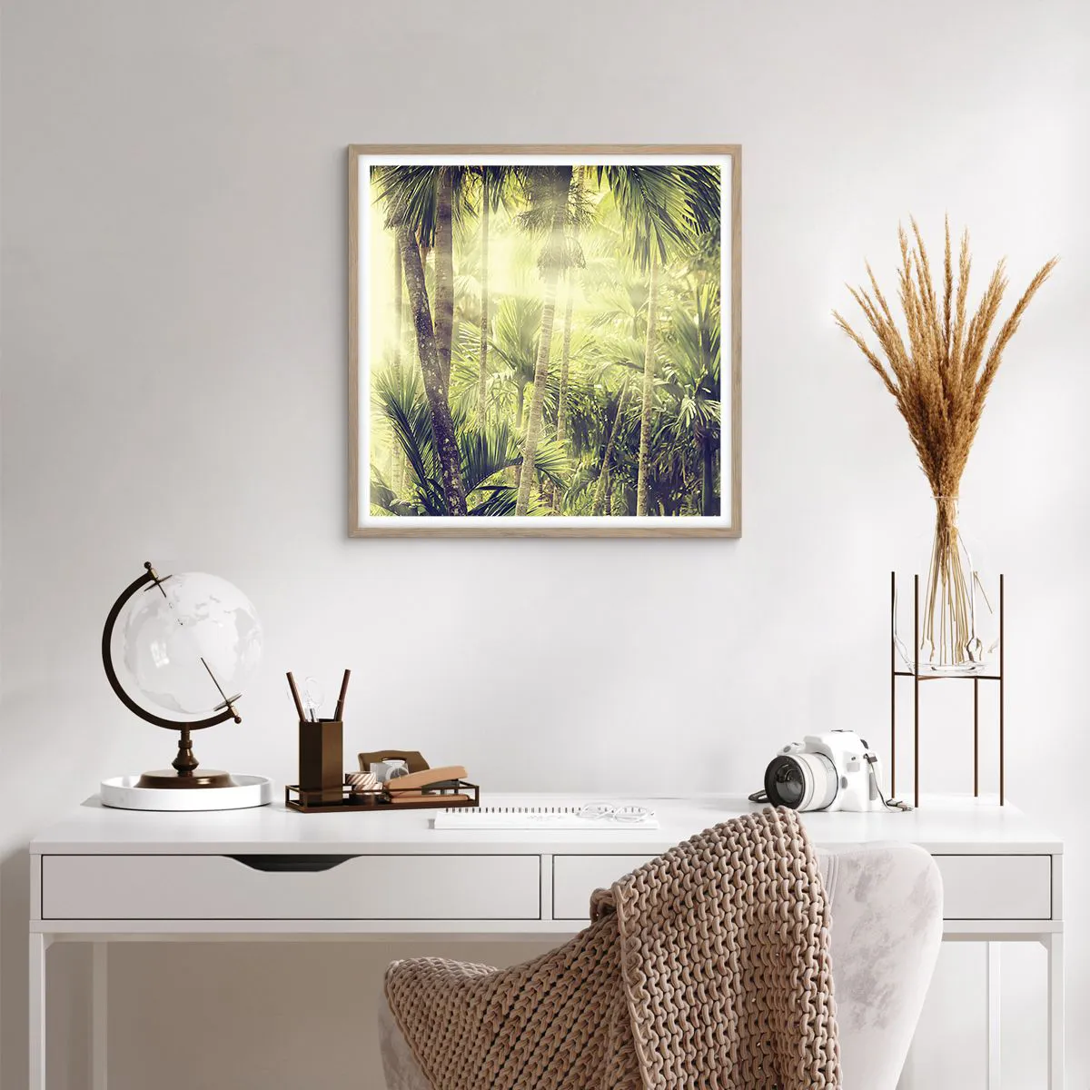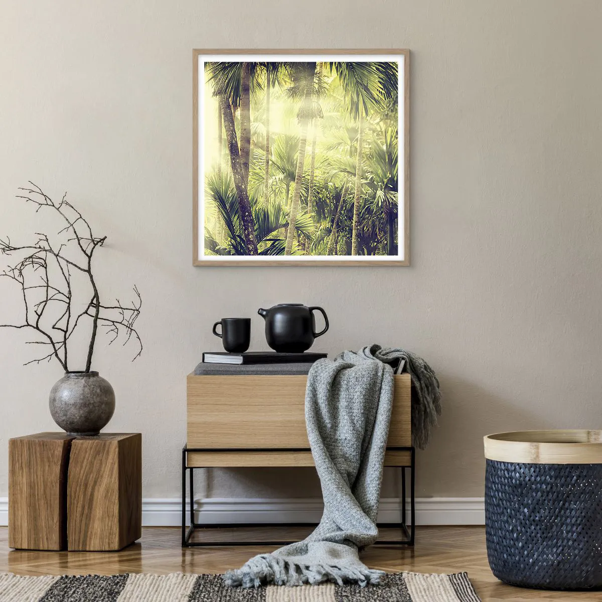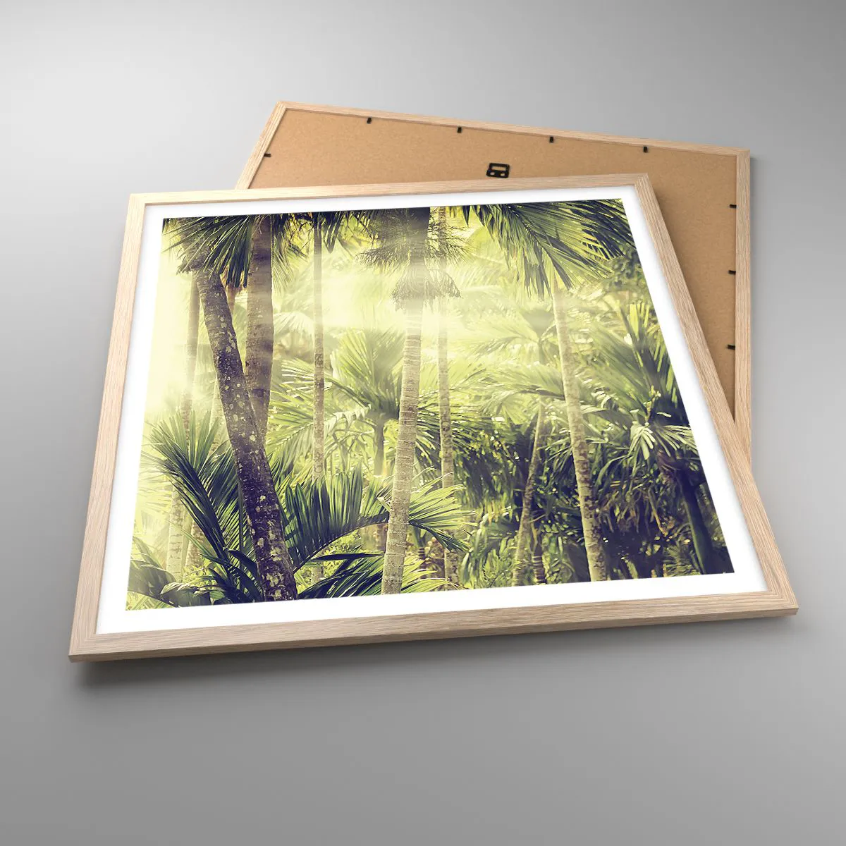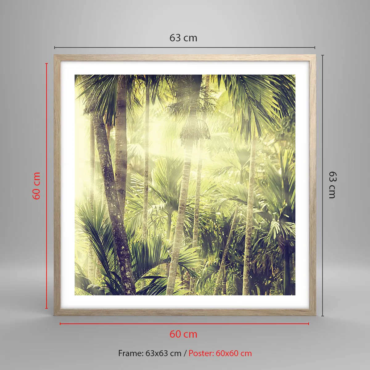 Plakat i ramme af lyst egetræ - I grønne gløder - 60x60 cm