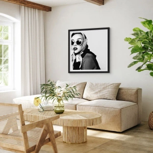 - Denne plakat forestiller et portræt af en kvinde iført solbriller og tørklæde. Et perfekt valg til moderne interiør. Inkluderer en sort ramme, 50x70 cm.