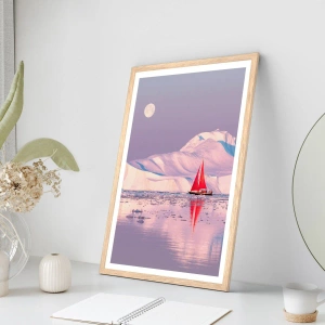 Plakat i ramme af lyst egetræ - Sejlets varme, isens kulde - 40x50 cm