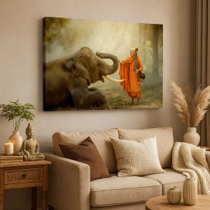 Lærredet er spændt op over rammen. Siderne og kanterne trykkes for at danne en fortsættelse af billedet. Maleriet er klar til at blive hængt op på væggen. Hvert produkt har en bøjle, der er fastgjort til rammen, og et samlesæt (skrue + dyvel).